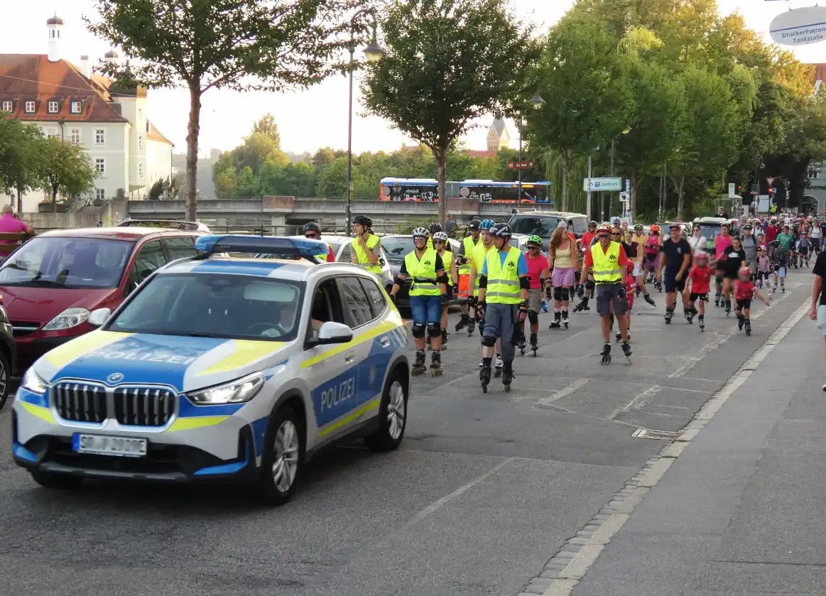 Bildtext: Roll over LA: An drei Terminen ging es heuer auf Skates durch die Stadt – das Fazit zum Saisonabschluss ist positiv: Viele Teilnehmer waren dabei und fuhren sicher durch die Straßen, auch dank der bewährten Unterstützung, unter anderem durch die Landshuter Polizei.