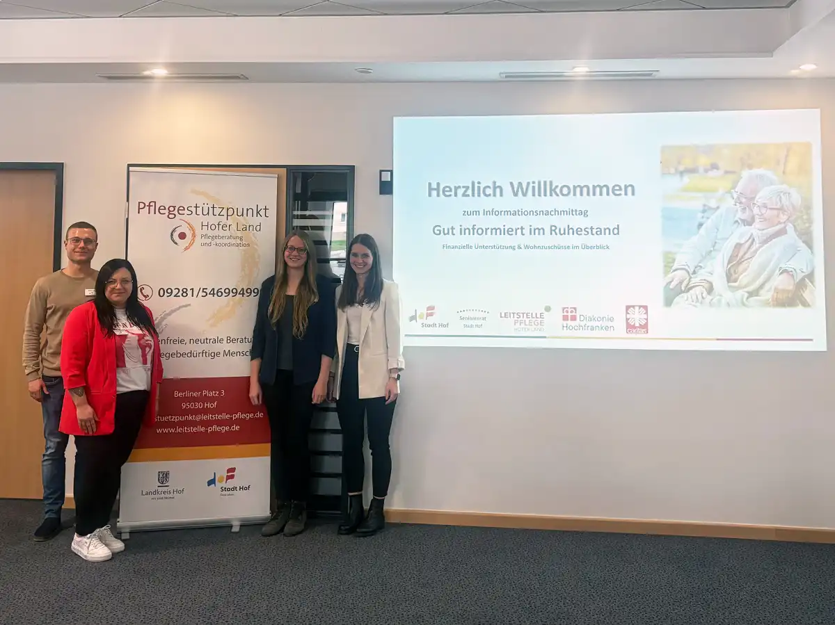 Die innovative Idee fand ihre Umsetzung am 20.10.2025 in der Leitstelle Pflege Hofer Land. Die Stadt Hof und der Seniorenrat luden in Kooperation mit der Leitstelle Pflege Hofer Land sowie den Beratungsstellen des Caritasverbandes Hofer Land e.V. sowie der Diakonie Hochfranken ein.