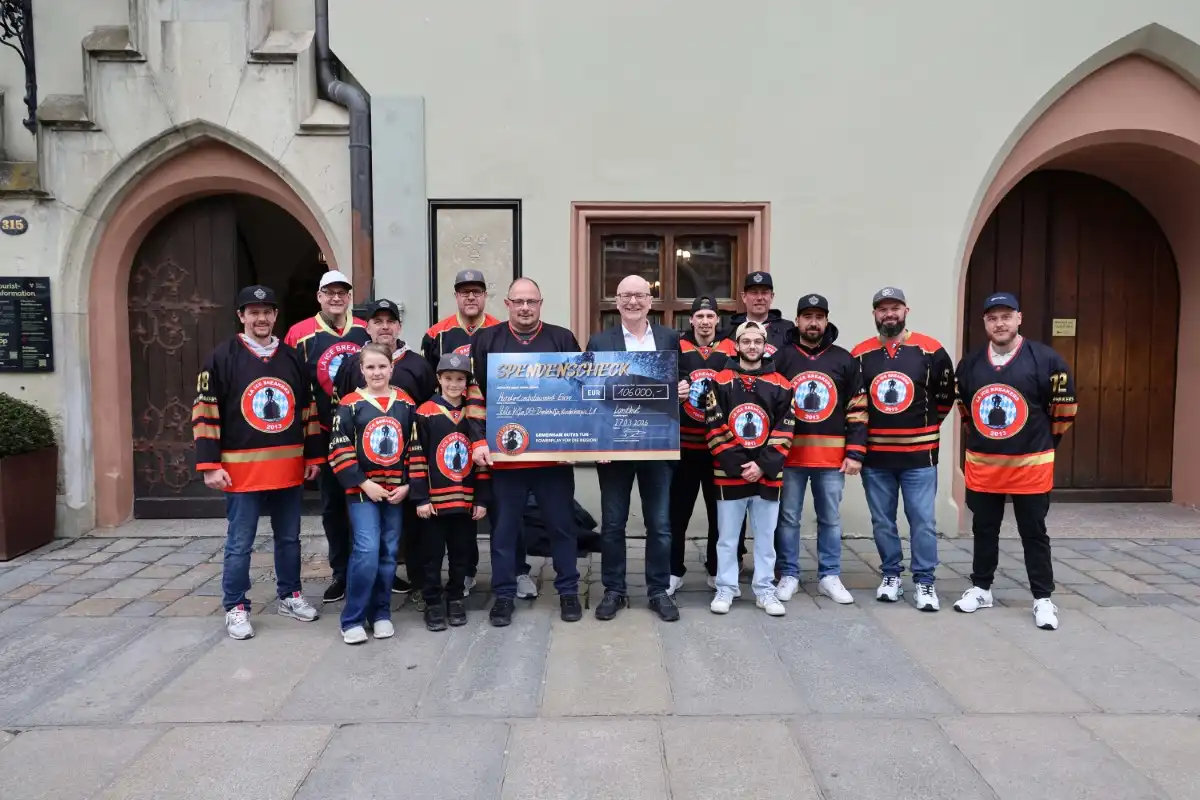 Vertreter der LA ICE Breakers, ein Team engagierter Amateur-Eishockeyspieler aus Landshut und Umgebung, haben kürzlich eine Spende für die OB-Direkthilfe an Oberbürgermeister Alexander Putz übergeben. „Mit dieser großzügigen Spende können wir weiterhin vielen unverschuldet in Not geratenen Bürgerinnen und Bürgern helfen. Ihre beeindruckende Initiative zeigt, was Engagement und der Wille, anderen zu helfen, erreichen können. Mein Dank gilt allen Beteiligten“, sagte Putz. Insgesamt kam bei dem Benefiz-Eishockeyspiel im Februar die Spendensumme von 106.000 Euro zusammen, die aufgeteilt wurde auf die OB-Direkthilfe, die „Stille Hilfe“ und das ambulante Kinderhospiz München Zentrum Niederbayern.